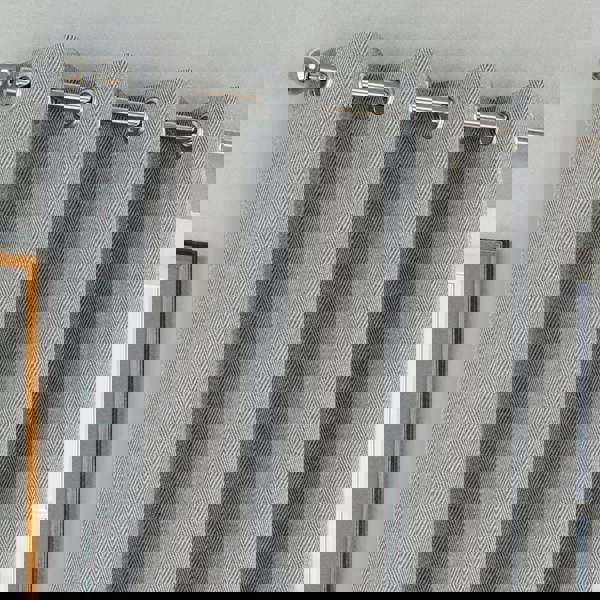 Enhanced Living Grey Herringbone Jacquard Blackout Eyelet Curtains - Bedroom & Living Room
