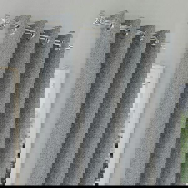 Enhanced Living Grey Textured Basketweave 100% Blackout Curtains - Thermal/Energy Saving Pair with Eyelets For Living Room & Bedrooms