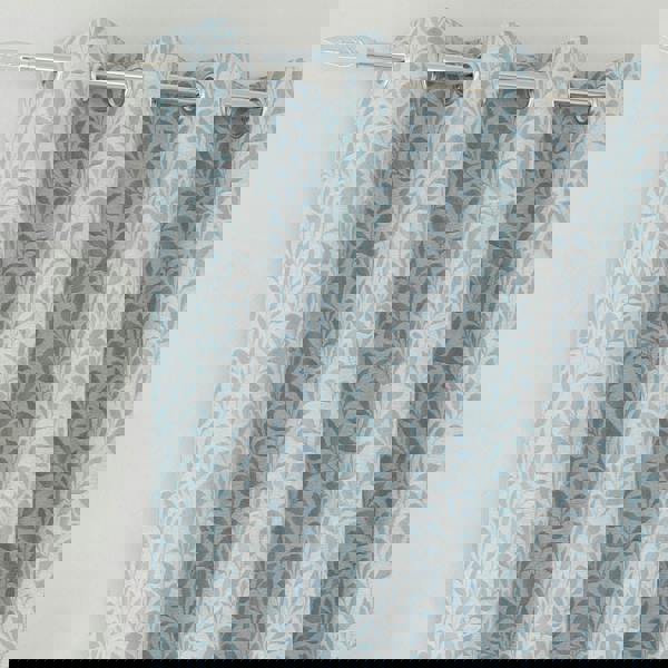 Enhanced Living Ice Blue 100% Blackout Jacquard Leaf Curtains - Thermal/Energy Saving Pair with Eyelets For Living Room & Bedrooms