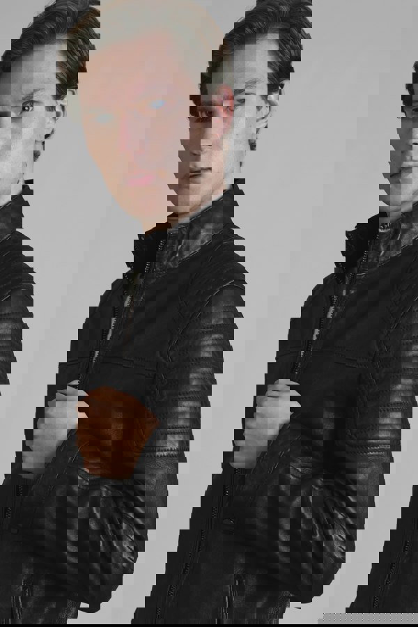 The quilted shoulder panels lend a subtle biker-inspired touch, while fine stitch detailing enhances its premium craftsmanship.