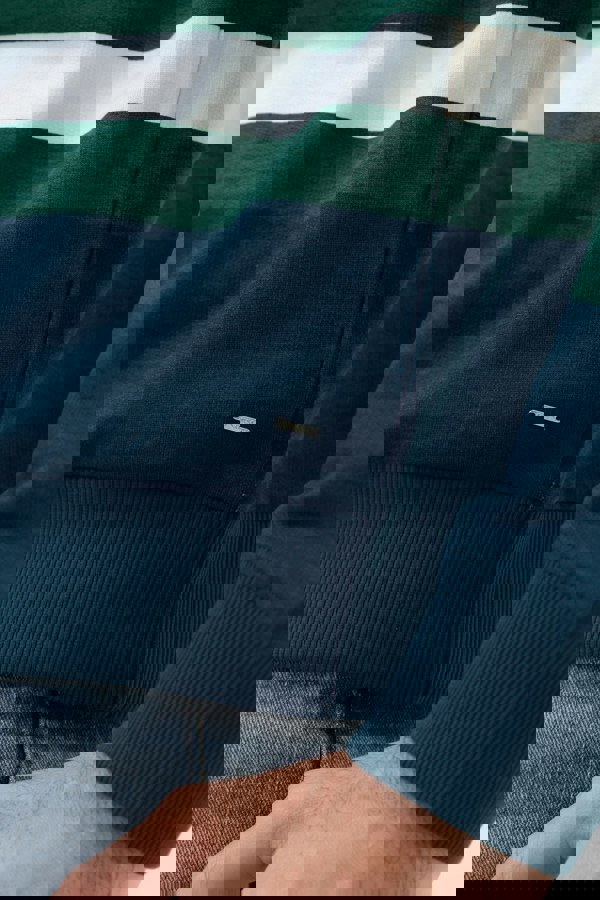 The neckline, cuffs, and hem of the sweatshirt are accentuated with a solid colour ribbed design, adding a touch of sophistication to the piece.