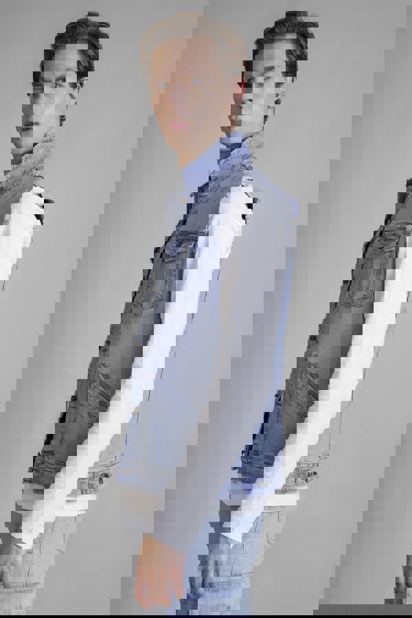 The Men's Regular Fit Stretch Denim Sleeveless Jacket is an essential addition to any wardrobe for those seeking a versatile and stylish layer for casual days out.