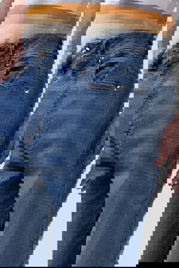 The cotton-rich super-stretch denim fabric used in these jeans ensures both comfort and flexibility. This material is soft and accommodating, allowing for a relaxed fit that moves with you throughout the day.