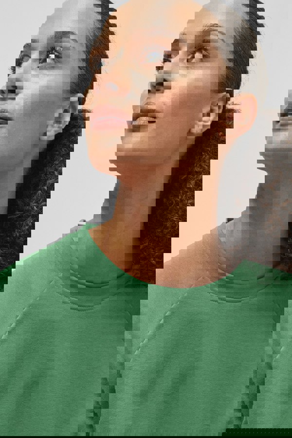 This woman's French terry-lined crew neck sweatshirt is designed primarily as loungewear, making it a perfect choice for relaxed days at home or casual outings. Its comfy fit and soft fabric make it ideal for lounging or running errands in style.