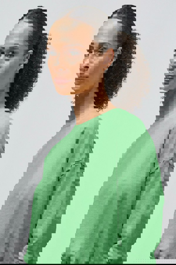 This baby terry-lined crew neck sweatshirt offers a cosy and stylish option for everyday wear. With a focus on comfort and fit, it features a drop shoulder design and long sleeves, making it perfect for layering. The sweatshirt boasts a unique high-density print on the back, adding a standout detail to its overall look. The oversized and comfortable fit ensures a relaxed feel, while the ribbed cuffs and hem provide a snug fit around the body. A metal patch on the front hem adds an extra touch of style.