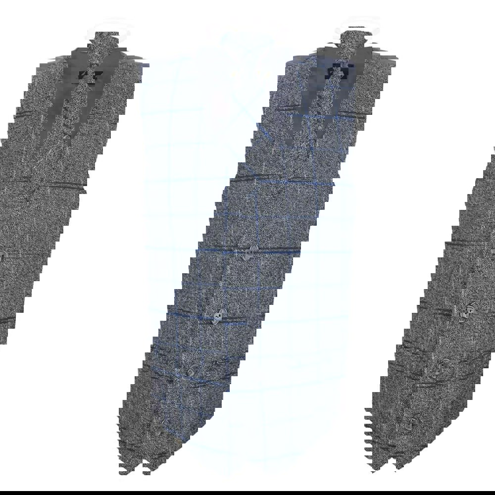 This waistcoat will completely finish the look. Tweed look fabric, beautiful blend of greys, with a navy blue check pattern. Oh so dapper !