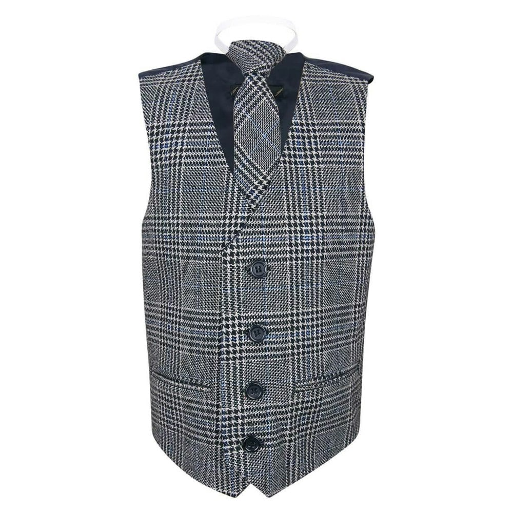 This waistcoat will completely finish the look. Beautiful blend of greys, with a bold black, white dogtooth pattern, with a shimmer of blue sparkle throughout out the check. Oh so smart and very dapper !
