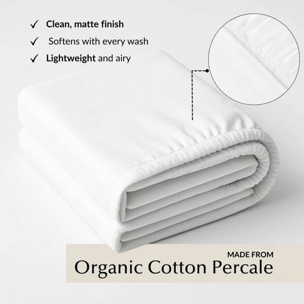 Slip into breathable comfort with our Cool & Crisp fitted sheet. Woven from organic cotton percale, it offers a smooth, hotel-style finish that feels refreshing night after night. With deep corners and elasticated edges, it stays perfectly in place for an uninterrupted night’s sleep.