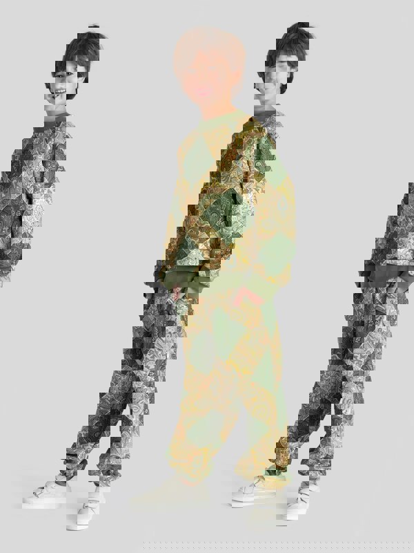 Etro boys paisley joggers in green for AW2024. The design centres on Etro’s signature paisley motif, presented in a vibrant green for a bold, recognisable look. A casual jogger shape keeps the overall style relaxed while the all-over pattern brings a distinctive finish.