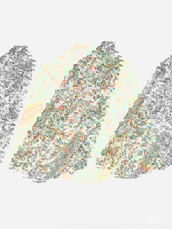 This Etro short jacket brings Italian craftsmanship to a multicolour floral paisley design. Swirling patterning and embroidered detailing create a distinctive finish, balanced by a structured collar and practical pockets. A press-stud fastening completes the front for a clean, streamlined look.
