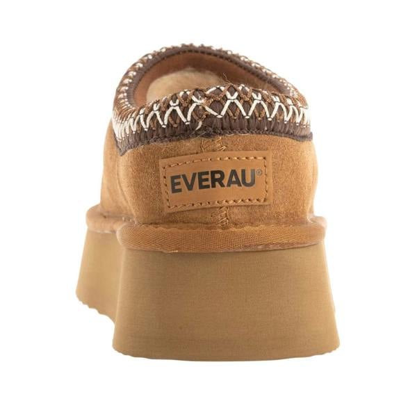These EverAu Wonga slippers come in a chestnut finish with a low-cut, slip-on shape for easy wear. The upper is made from cow suede leather, finished with embossed detailing and a logo. A round toe completes the profile, while the platform heel adds height to the silhouette.