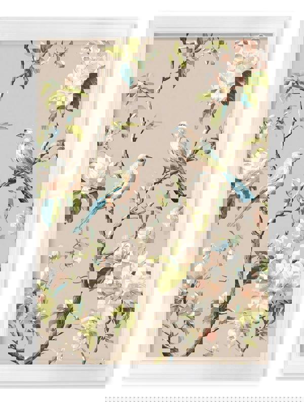 These graceful birds and blossom prints feature delicately illustrated songbirds resting among soft, blush blooms and winding branches. With a fine detailed paint style and a harmonious mix of soft pinks, muted greens, warm neutrals and touches of blue, they bring a calm, uplifting presence to any room. Set against a soft, airy background and finished in our Strong White Hurstwood frame, each print works beautifully as a standalone piece or paired together to create a serene, nature-inspired focal point.