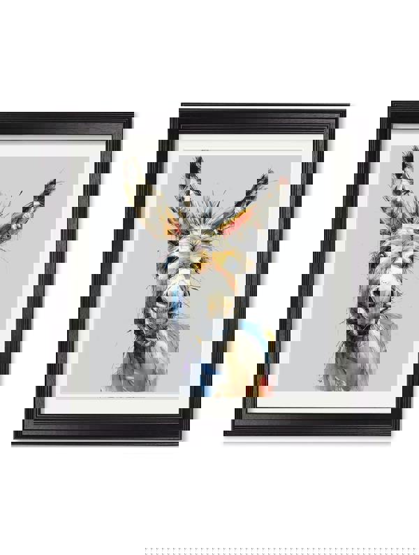 These charming prints bring a touch of fun to your walls with delightful portraits of two charming Donkeys, Jack & Jennet. Full of character, the design features expressive sketch and brushstroke details that capture there soulful gaze and endearing personalities. The textured tones and round composition create a cosy, heartwarming focal point that instantly lifts the mood of any room. Set against a faded pale grey background and finished in our square Black Hurstwood frame with mount, each print is a perfect standalone piece or as part of a cute collection.