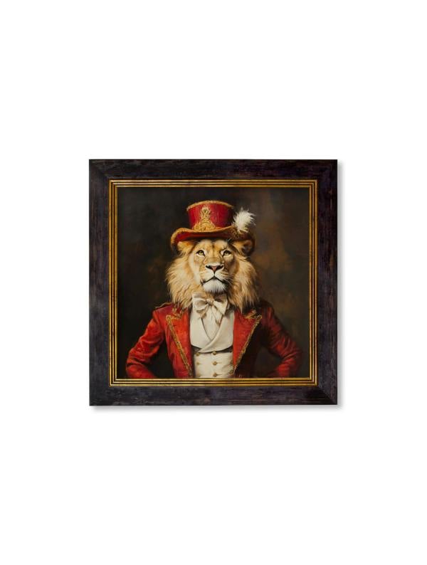 Maximus Mane is a Circus Ringleader who brings elegance and personality to your interior. Inspired by an 18th Century rider, this character portrait is presented in an Oxford Black and Gold square frame, designed to sit proudly on your wall as a distinctive focal point.