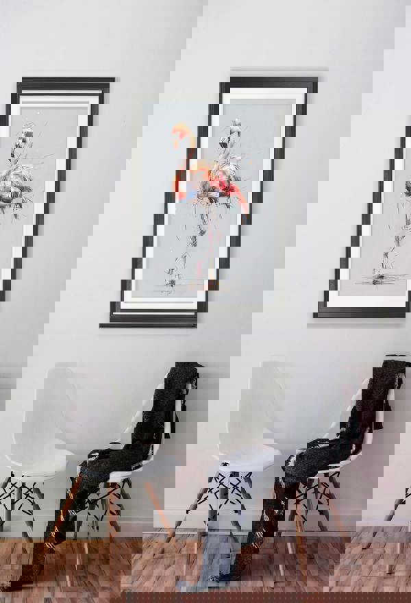 Bring a light, characterful accent to your interior with the Exceptional Art Pink Flamingo Cosy Sketch. This charming print captures a graceful pink flamingo in a playful, sketchy brushstroke style, set against a pale grey background for a soft, calming finish. Presented in a Black Hurstwood frame with mount, it works beautifully as a standalone piece or as part of the animal cosy sketch collection.