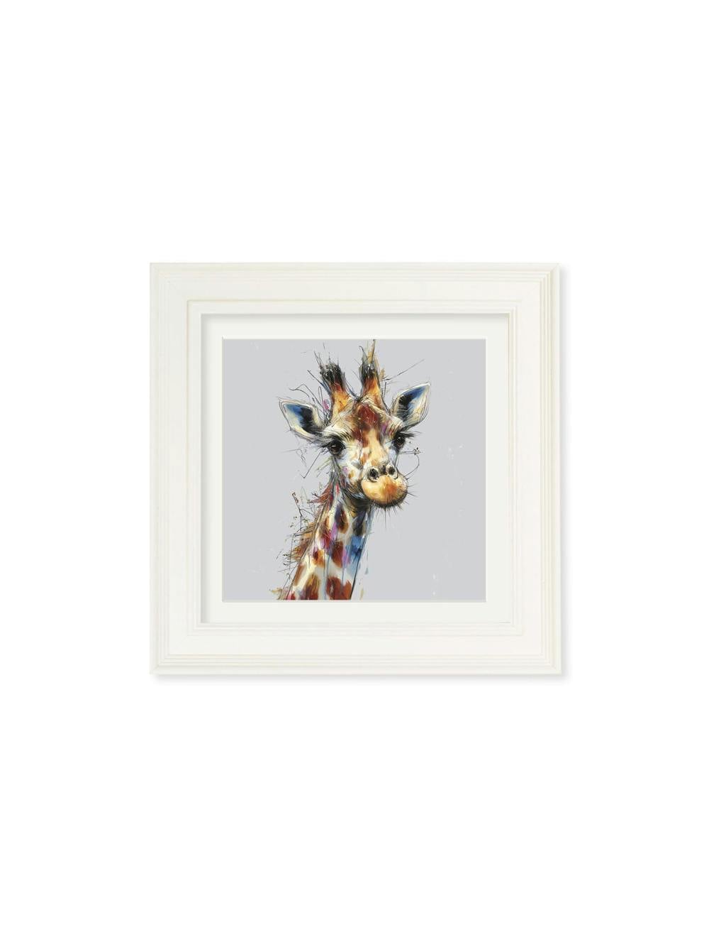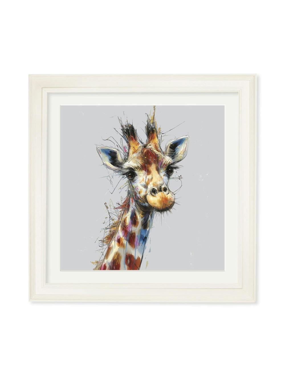 This charming print features a Tall Giraffe full of personality, with fun sketch and brushstroke details that capture its curious gaze and sweet nature. Warm, textured tones and a simple, elegant composition creates a cosy, uplifting focal point for any room. Set against a pale grey background and finished in our square Cream Hurstwood frame with mount, this print stands beautifully on its own or as part of our animal cosy sketch collection.