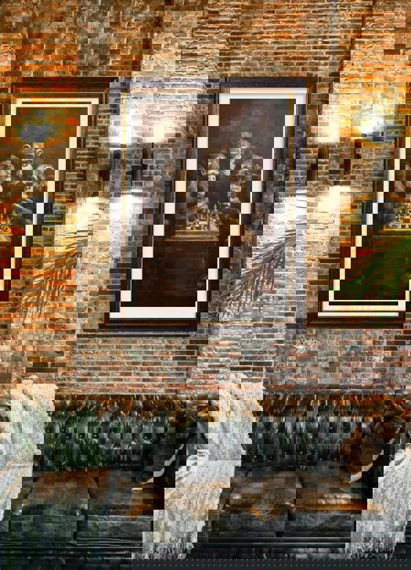 Bring a playful focal point to your interior with Exceptional Art The Chess-Playing Chimps, a characterful print depicting three chimps gathered around a chessboard in thoughtful concentration. Presented in a classic oil paint style, the artwork is defined by warm lighting, soft textures and beautifully blended brushstrokes, with deep browns and subtle golden tones creating a cosy, inviting feel for offices, lounges or games rooms.