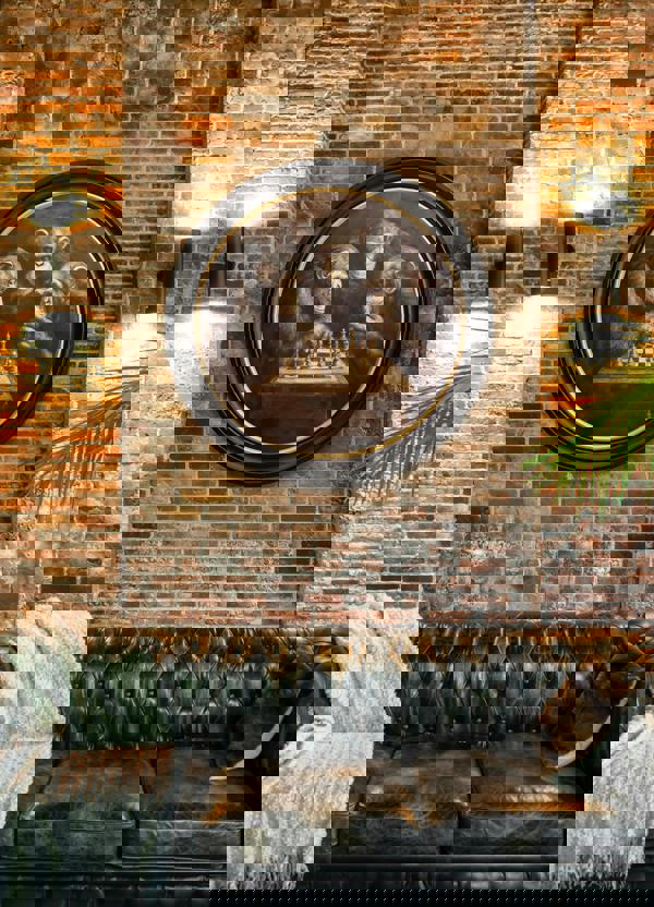 Finished in a round Oxford Black and Gold frame, this piece arrives ready to hang and enjoy. It also pairs beautifully with The Card-Playing Chimps for a coordinated display.