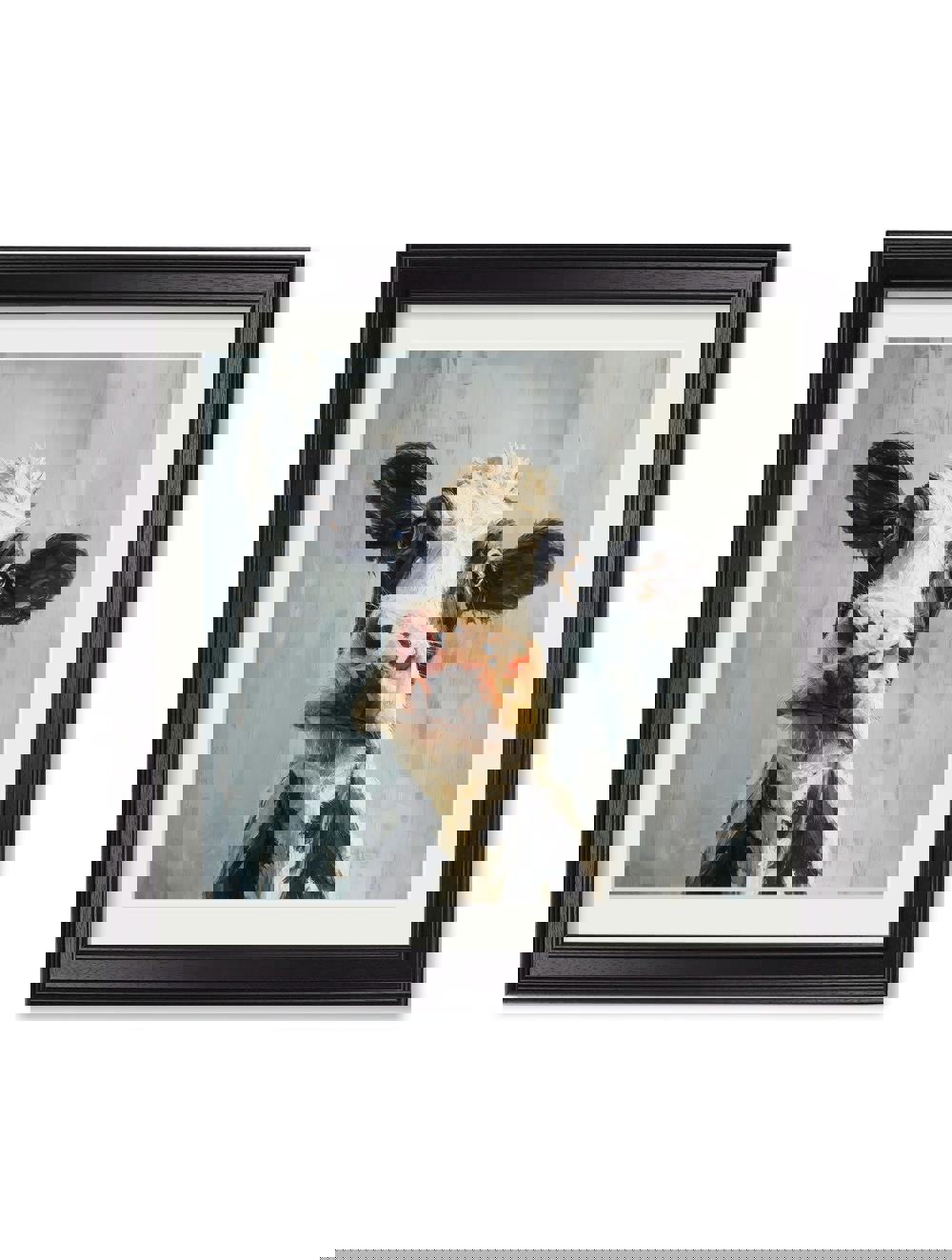 This charming print brings the spirit of the countryside to life with a delightful portrait of a curious cow. Bursting with personality, the artwork showcases expressive brushstrokes that capture the cow’s endearing, slightly goofy gaze and lovable character. Set against a softly washed pale blue background, the print feels fun, cheerful and full of countryside charm. Finished in our square Black Hurstwood frame, it makes a playful and stylish addition to any room.