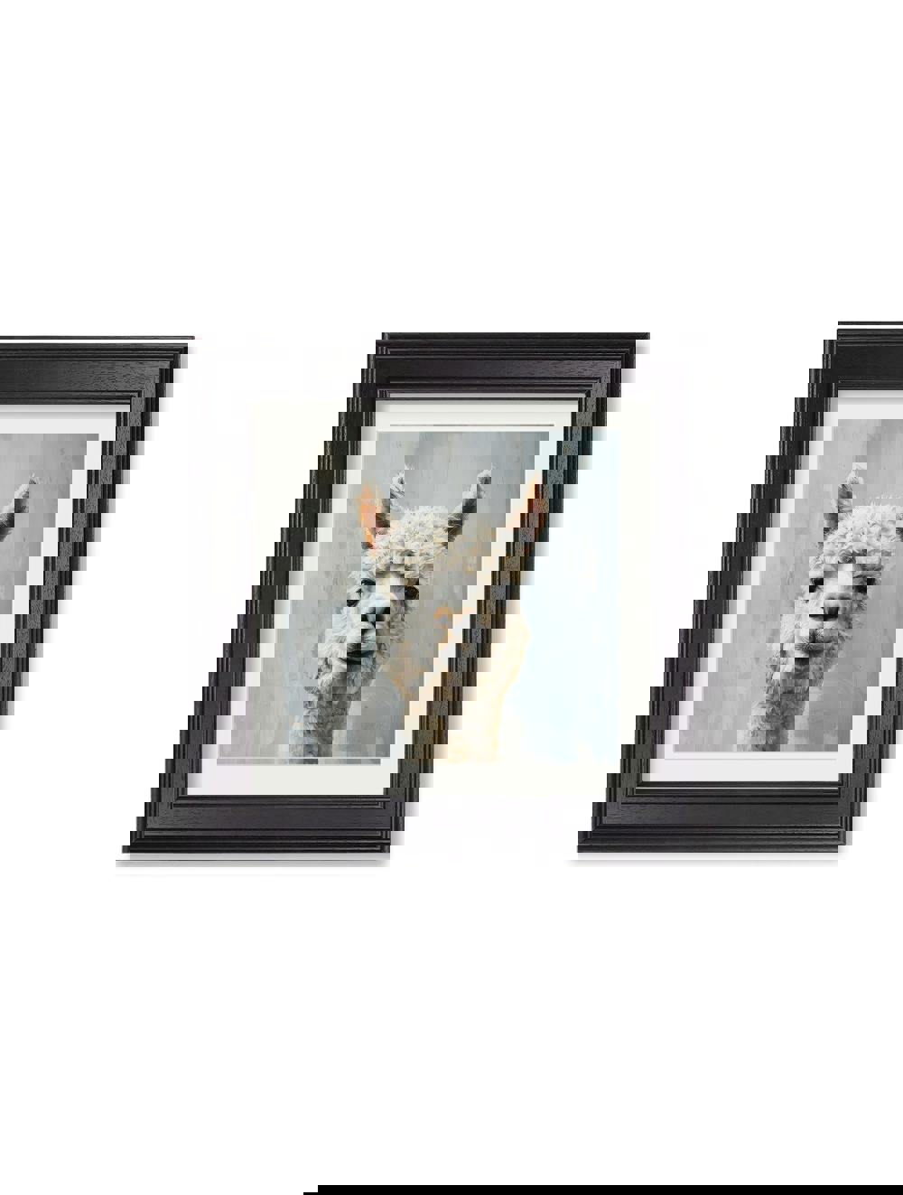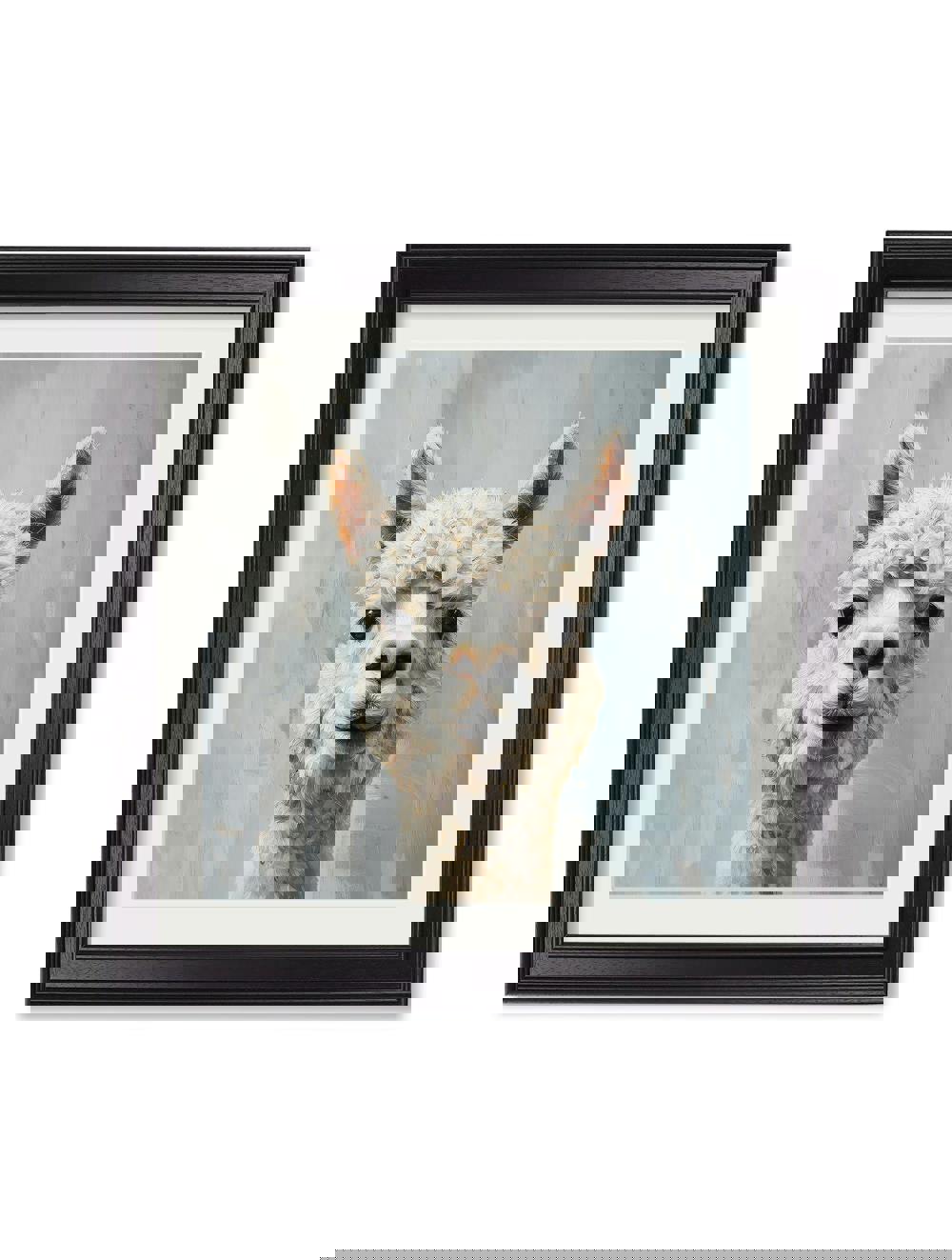 This joyful print brings a splash of fun to your wall with a wonderfully Goofy Alpaca. Brimming with personality, the artwork showcases energetic brushstroke details that highlight its whimsical expression and lovable charm. Its cheerful face adds an instant lift to any room, making this print a heartwarming and playful addition. Set against a softly faded pale blue background and finished in our square Black Hurstwood frame with mount, it’s a charming print for any space.