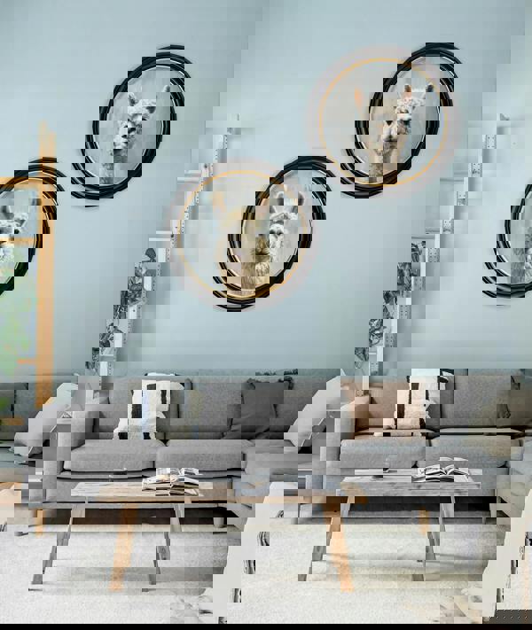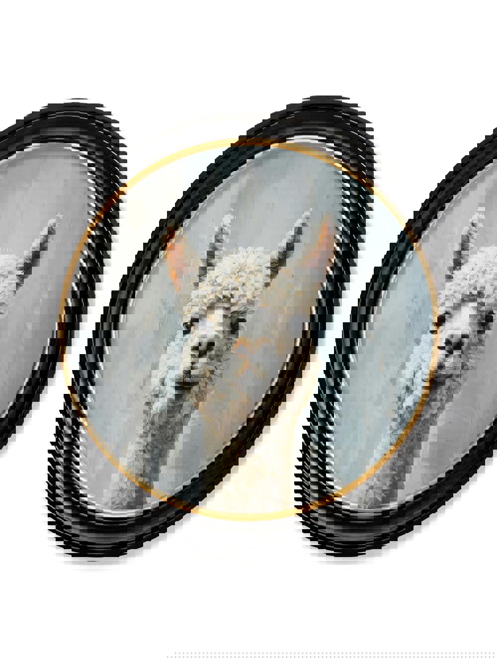 This joyful print brings a splash of fun to your wall with a wonderfully Goofy Alpaca. Brimming with personality, the artwork showcases energetic brushstroke details that highlight its whimsical expression and lovable charm. Its cheerful face adds an instant lift to any room, making this print a heartwarming and playful addition. Set against a softly faded pale blue background and finished in our signature round Oxford Black and Gold frame, it’s a charming print for any space.