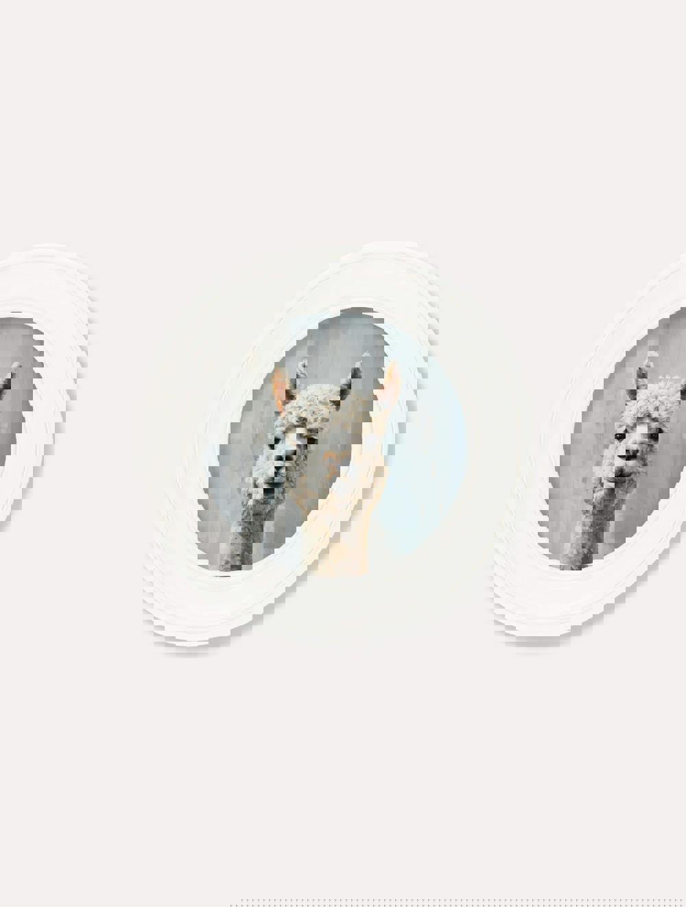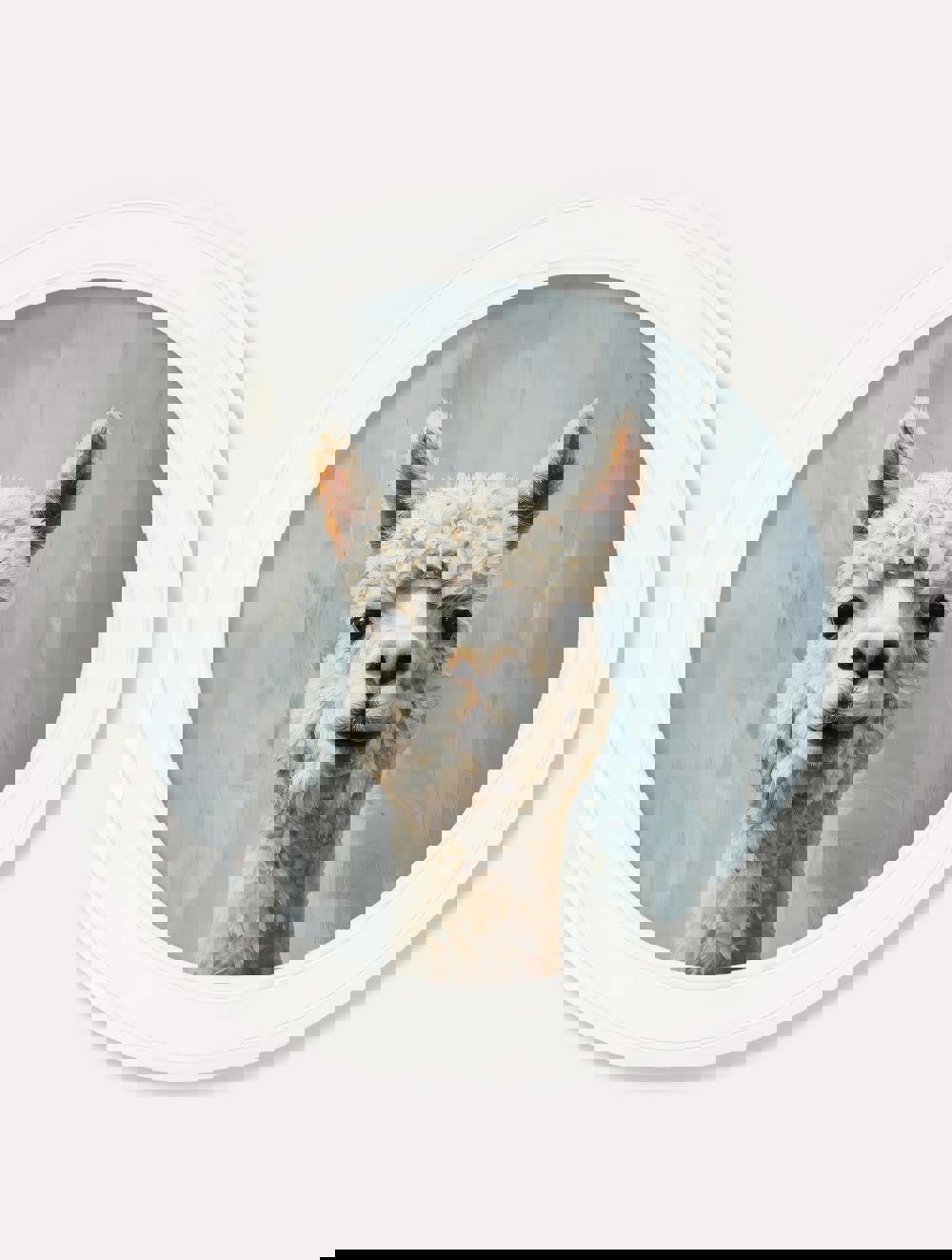 This joyful print brings a splash of fun to your wall with a wonderfully Goofy Alpaca. Brimming with personality, the artwork showcases energetic brushstroke details that highlight its whimsical expression and lovable charm. Its cheerful face adds an instant lift to any room, making this print a heartwarming and playful addition. Set against a softly faded pale blue background and finished in our bold round Oxford Strong White frame, it’s a charming print for any space.