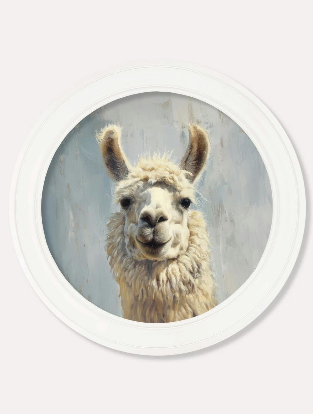 This joyful print brings a burst of personality to your wall with a delightfully Goofy Llama. Full of character, the design features lively, expressive brushstrokes that capture its playful expression and mischievous charm. With its cheerful face, this print instantly lifts the mood, making it a fun and heartwarming addition to any room. Set against a softly faded blue background and finished in our bold round Oxford Strong White frame, it’s a perfect way to brighten your space.