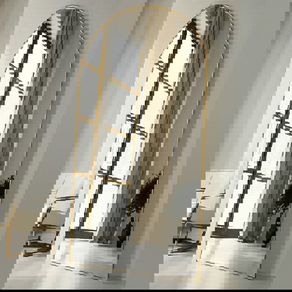 Whether you're looking to create a more spacious and open feel in a small room, or simply want to add a touch of elegance and refinement to your home, our Modern Gold Metal Archtop Full Length Mirror is the perfect solution. With its modern design and versatile functionality, it's an essential addition to any contemporary home. Don't miss out – elevate your living space today with our full-length gold arched mirror!