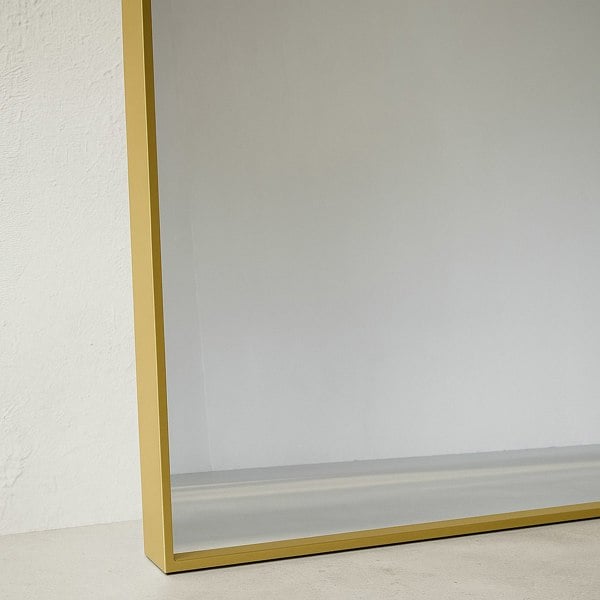 One of the most versatile mirrors you'll ever own, our Modern Gold Metal Archtop Full Length Mirror includes built-in hanging brackets for easy installation. Hang it on the wall for an extra large wall mirror that amplifies the perception of spaciousness, or place it on the floor as a floor standing mirror to check your reflection or admire your wardrobe choices.