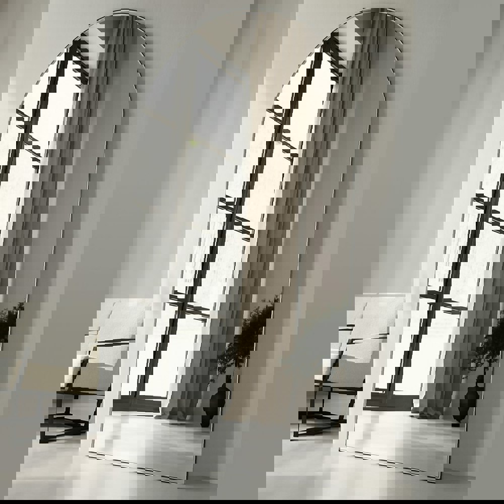 The Modern Silver Metal Archtop Full Length Mirror is a timeless piece that will never go out of style. Its sleek design and modern silver finish make it a must-have for any contemporary home, infusing a hint of elegance and refinement into your interior. Don't miss out on this essential addition to your living space – order your mirror today!
