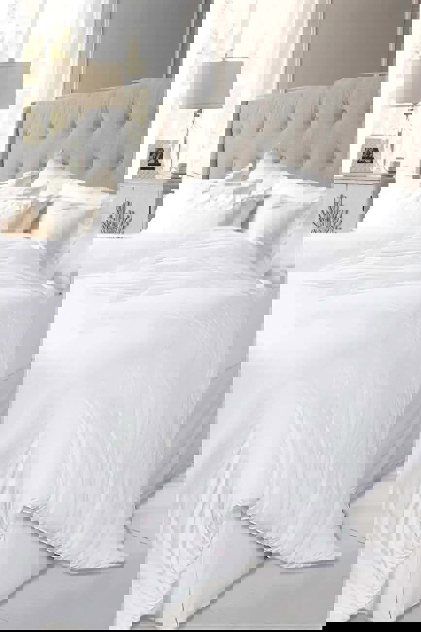 Feels Like Down: Filled with premium microfibre that replicates the lightness and loft of natural down, offering soft, cloud-like comfort without allergens. All-Season Warmth: With a 10. 5 tog rating, it provides the ideal balance of warmth and breathability, making it perfect for year-round use.