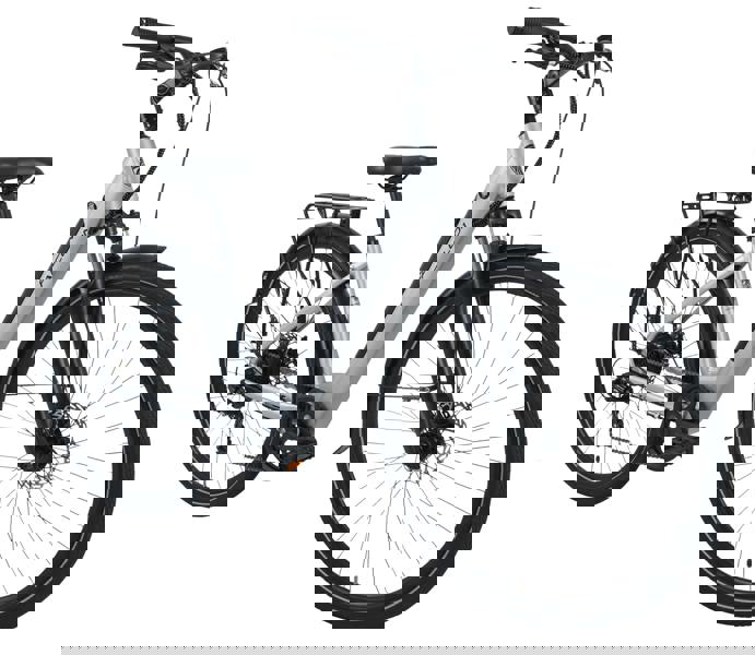 For safety and peace of mind, the Horizon is fitted with puncture protected tyres that have a reflective sidewall strip to increase visibility in low light and nighttime riding. For convenience it has a pannier rack with rear reflector, full length mudguards and kickstand.
