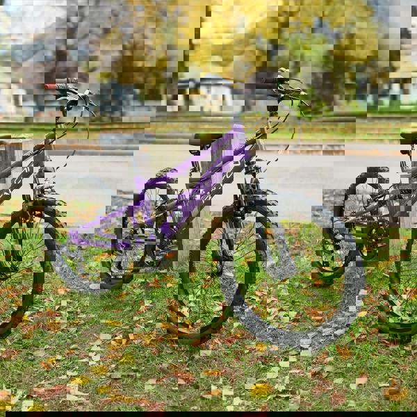 The Falcon Moonstone Full Suspension 20" bike has been designed specifically for junior riders aged 7-9 years looking for a great ride combining style and performance. Unlike many other brands, Falcon have designed their junior full suspension bikes for younger riders with an uninterrupted suspension design that can accommodate a longer seat-post to provide greater adjustment as the rider grows, unlike old fashioned “Y” frames. This clever design not only allows more adjustment but results in a stronger frame and more enjoyable ride. The hi-tensile steel frame is strong and durable while front and rear suspension provides extra comfort when the riding gets rough with a soft spring rate suitable for junior riders. The front suspension fork and rear shock absorber feature springs that are specifically chosen for younger riders, with springs rates to soak up the bumps when riding off road while the MTB saddle with extra padding takes care of the rest for a more comfortable ride. As well as being great looking, the Moonstone has a great spec to match. 6-speed gearing is powered by a Shimano rear derailleur and Revoshift shifter, ensuring smooth gear changes without losing grip of the handlebars. The double-sided chainwheel guard protects fingers and clothes and prevents the chain from slipping off the chainring. MTB style pedals provide reassuring grip and the soft compound handlebar grips are durable and comfortable to hold. Braking is taken care of by reliable front and rear V-brakes with specially designed reach-adjustable brake levers that can be adjusted to accommodate smaller hands. The Moonstone is ideally suited to grow with young riders thanks to the longer 200mm seat post, adjustable saddle fore and aft position and quill handlebar stem that can be adjusted up and down to suit. The wheels are assembled with strong yet lightweight alloy rims and knobbly MTB tyres for extra grip when riding off road. The Falcon Moonstone dual suspension mountain bike is a bike that stands out for all the right reasons and a great bike for learning to use gears and suspension.