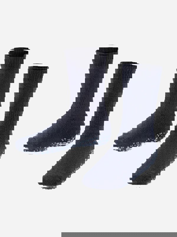 Falke Kids Catspads house socks in navy come as a unisex double pack. The design combines compact cotton with light merino wool and a plush layer, finished with an elastic zone at the ankle. FALKE Perfect Fit completes the construction.