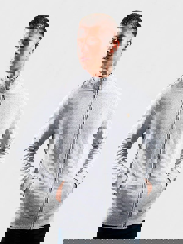 The Farah Vance Full Zip Sweater in Light Marl Grey is a versatile layering essential that works beautifully across seasons. Its soft marl grey tone pairs effortlessly with your everyday wardrobe, from casual jeans to tailored trousers.
