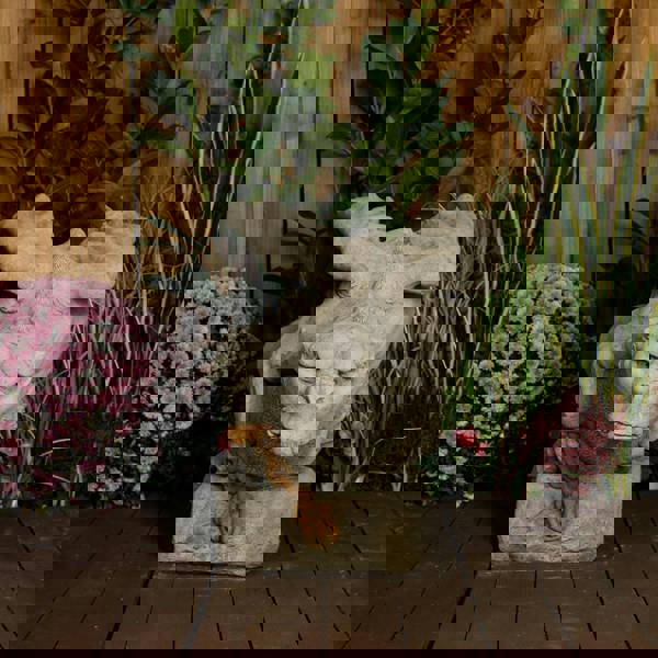 Add a touch of gothic mystery and mythical charm to your outdoor space with the Large Stone Gargoyle on Ball Statue. This intricately crafted cast stone sculpture features a powerful gargoyle perched atop a smooth stone sphere, exuding a commanding presence with its fierce expression, muscular form, and detailed wings. Traditionally believed to ward off evil spirits and offer protection, this statue is both a decorative masterpiece and a symbol of strength. Crafted from high-quality, weather-resistant stone, this gargoyle is designed to withstand the elements, making it a perfect addition to gardens, patios, or entranceways. Whether standing alone as a striking focal point or paired with other gothic-inspired décor, this statue brings an aura of mystery and legend to any setting.