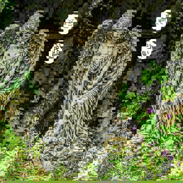 Beautifully detailed Angel Memorial Statue, truly charming and captivating. It is solid, heavy and stunningly designed - a real centre piece to admire and remember your loved one. Sculpted with angel wings Stunning Angel Memorial tribute is cast in quality designer resin to help you preserve the treasured memory for yourself or a lover. Place it in a particular spot in your home or garden as a healing gift that honours a beloved ones.