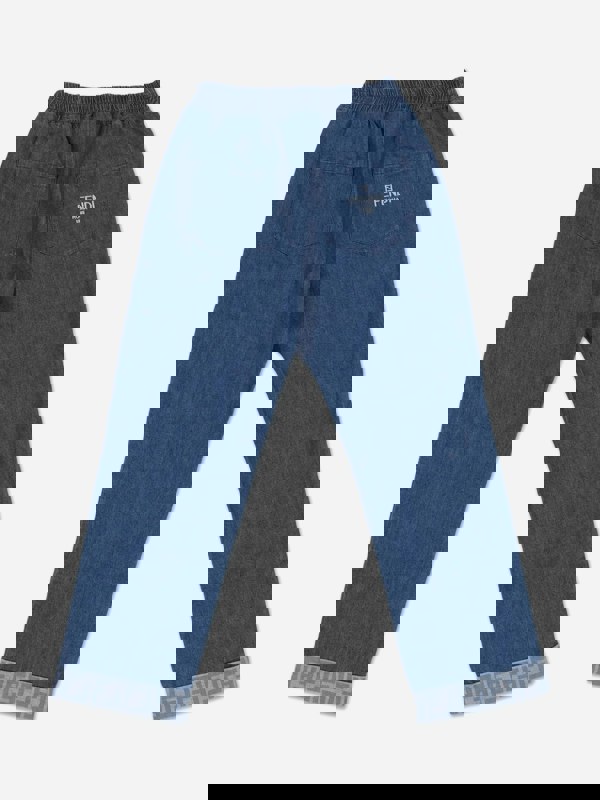 These Fendi Kids jeans come in dark blue lightweight denim with a wide, straight-leg cut. An elasticated waistband keeps the finish simple and comfortable, while tone-on-tone FF logo cuffs add subtle branding at the hem. Made in Italy, they combine clean utilitarian lines with signature Fendi detailing.