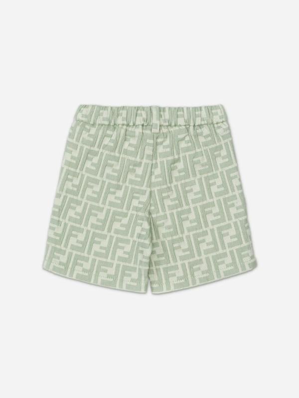 Fendi Kids brings a bold designer finish to everyday dressing with the Fendi Baby Boys FF Logo Shorts in green. Made in Italy, this pair is set for the SS2026 season and centres on the house’s FF logo for a distinctive look.