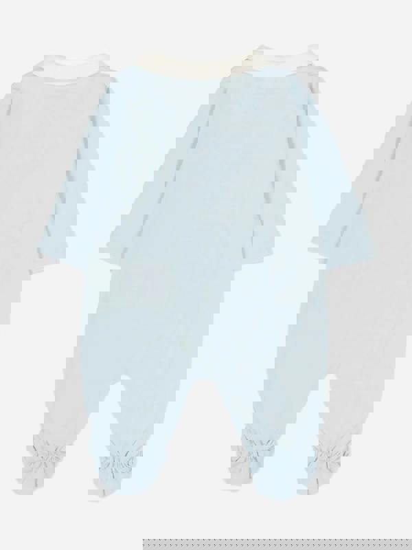 This Fendi Kids babygrow set comes in an azure blue colourway and includes three coordinated pieces. The set centres on a Peter Pan collar onesie with a Fendi logo on the front, paired with matching accessories for a complete look.