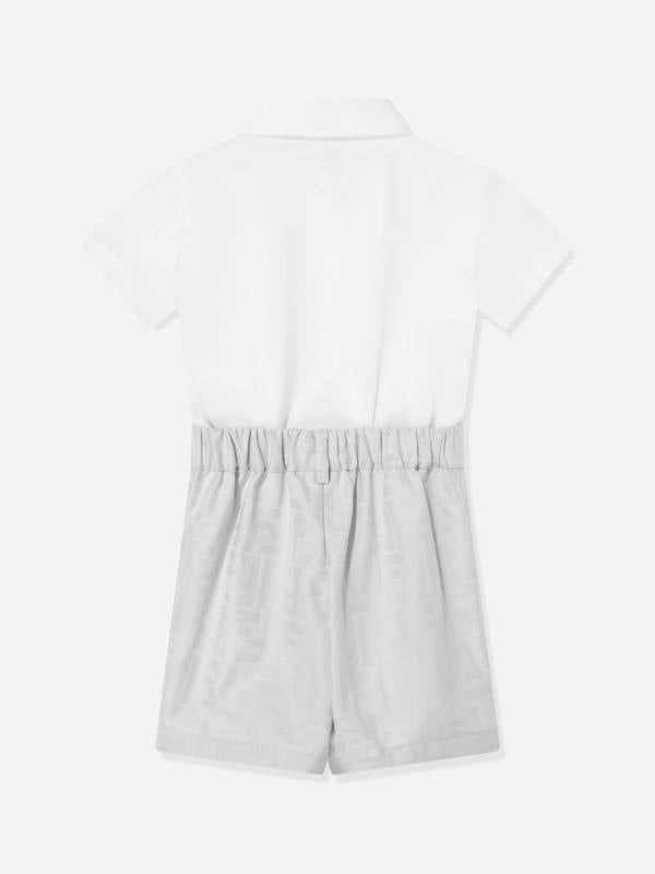 A refined choice for warmer days, the Fendi Baby Boys Poplin Playsuit in grey brings a clean, classic look to little wardrobes. From Fendi Kids, this playsuit is made in poplin and comes in a versatile grey hue suited to a range of occasions.