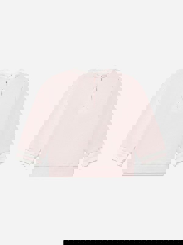 Fendi Kids baby girls sweatshirt in rose water cotton jersey with multicoloured embroidery on the front. A white edge trim adds a clean contrast to the soft pink tone. Made in Italy, it combines a simple sweatshirt shape with detailed embroidery and a neat finish.