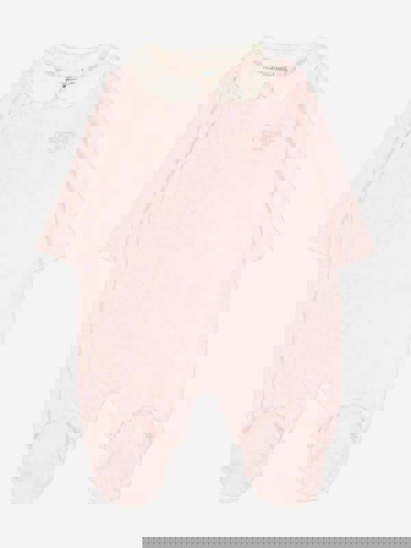 This baby girls babygrow set from Fendi Kids comes in pink and includes three coordinated pieces. The set pairs a Peter Pan collar onesie with matching accessories, each finished with Fendi logo detailing on the front. Feet on the onesie include a teddy bear detail, adding a playful accent to the clean, minimalist look.