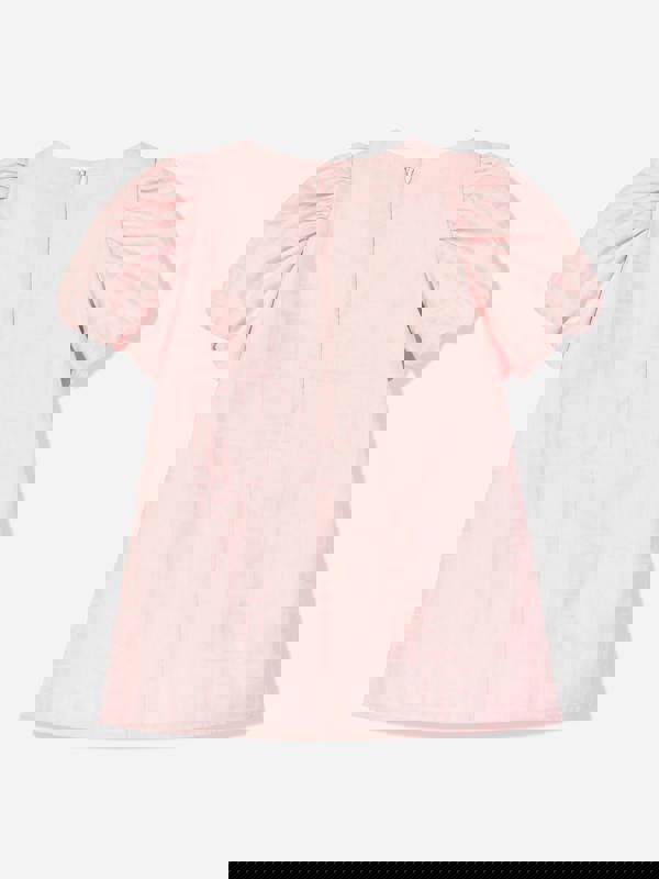 This baby girls occasion dress from Fendi Kids comes in rose pink cotton with an all-over FF jacquard. The front is embroidered with the Fendi Roma logo, bringing a recognisable house detail to the look. A round neckline and short puff sleeves create a classic silhouette, while a zip fastening at the back keeps the finish neat and secure.