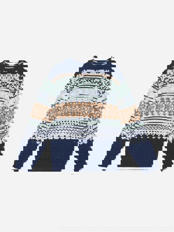 This Fendi Kids jumper is knitted in blue wool with a round neckline and long sleeves. The front has a Norwegian-style multicolour intarsia, adding contrast to the classic crew-neck shape.