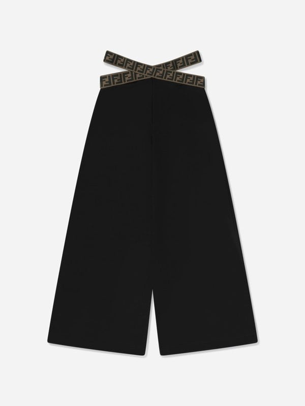 Fendi Kids Girls Band wide leg trousers in black bring a clean, modern shape to a girl’s wardrobe. Made in Italy, this pair reflects the brand’s Italian fashion house heritage with a focus on precise construction and a distinctive wide-leg silhouette.