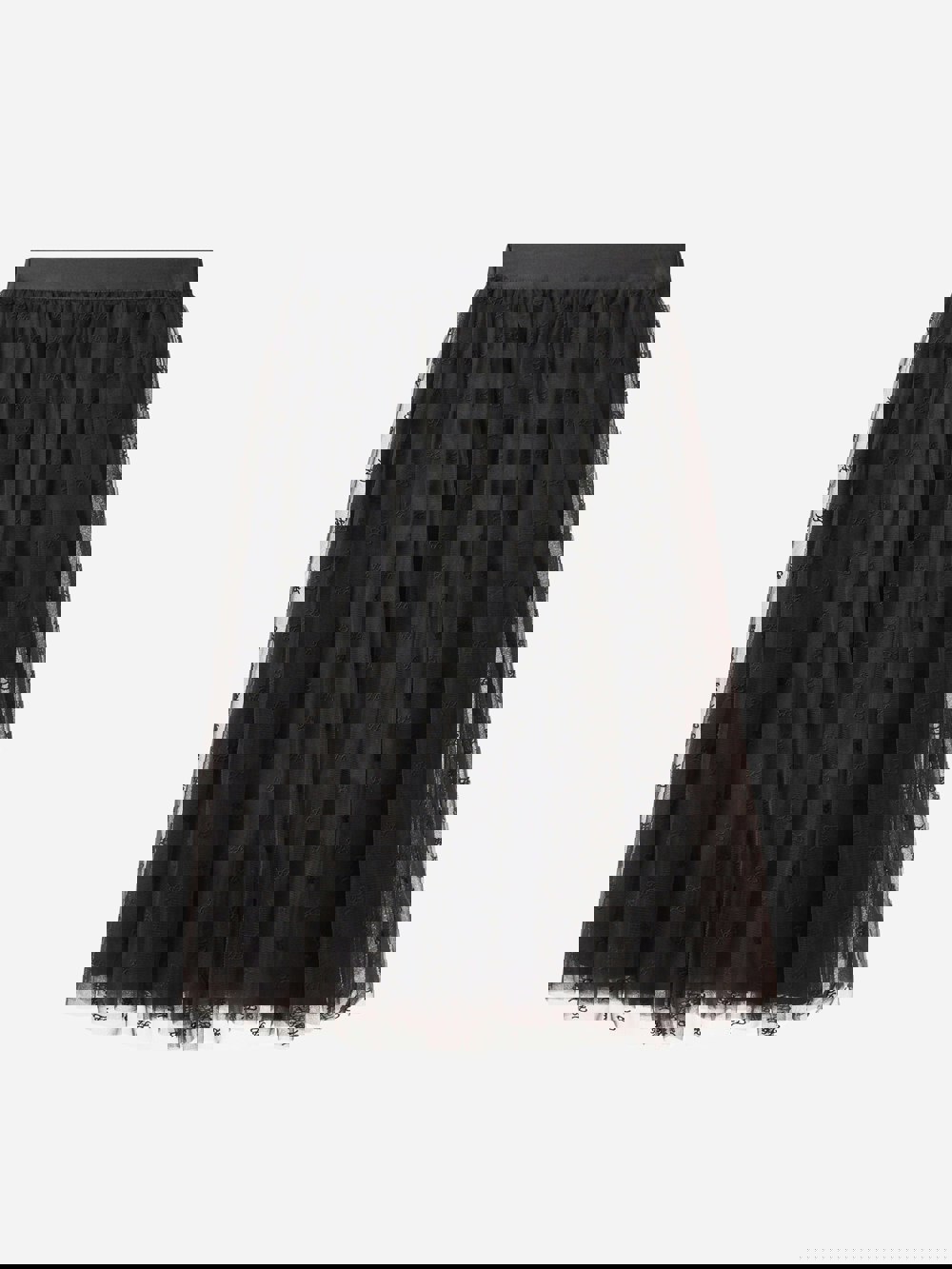 Made for occasions where a more elevated outfit is needed, the skirt keeps the focus on its embroidered tulle construction and classic black colourway.
