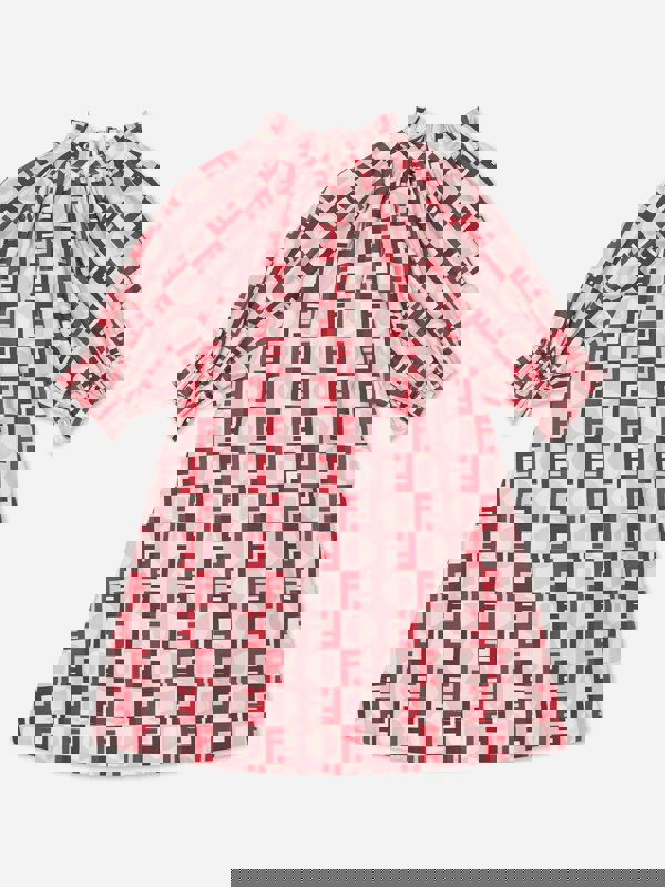 This girls’ occasion dress from Fendi Kids comes in pink poplin with an all-over print and a large multicolour FF motif. Made in Italy, it combines a bold logo pattern with a clean, structured fabric finish. Elasticated detailing at the sleeves and collar adds shape and definition, while the button fastening completes the look with a refined touch.