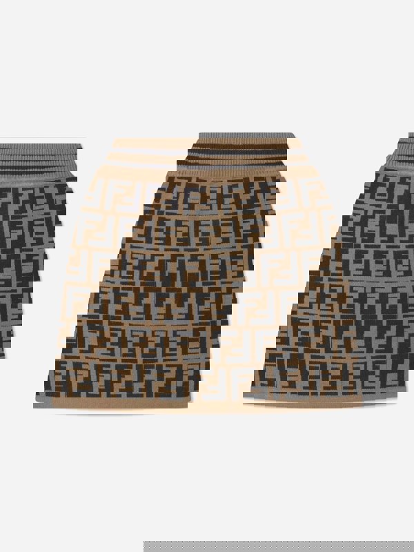 This girls’ knitted skirt from Fendi Kids comes in brown with an all-over FF logo design. Made in Italy, it brings a signature house motif to a knitwear staple, with a clean, recognisable finish.