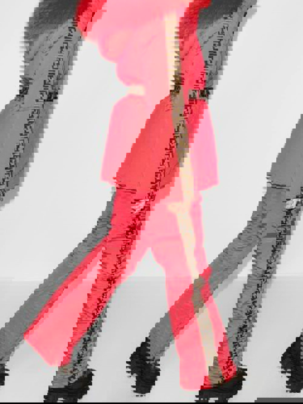 Fendi Kids Girls FF logo trim ski trousers in red. A bold winter-ready style with signature FF logo trim for a distinctive designer finish. The vibrant red colour stands out, while the ski trouser silhouette suits cold-weather wear.